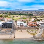 RIVERFRONT HOME. Discover the charm of riverside living in this inviting 2-story, 4-bedroom, 3.5-bathroom home nestled in a quiet cul-de-sac within the serene Colorado Shores community. Offering a perfect blend of comfort and functionality, this residence is designed for easy living. Step inside to find a well-thought-out design, featuring a bedroom and bath on the main floor for added convenience. The living room is the heart of the home, boasting a raised fireplace and a modest wet bar, complete with a wine fridge and sink. Wired for sound and security, it’s a comfortable space perfect for quiet moments and intimate get-togethers. The kitchen, adorned with granite countertops and a bay window overlooking the Colorado River, includes a large breakfast area, all appliances (refrigerator, stove, oven, dishwasher, microwave and trash compactor) and an indoor brick BBQ For those warm days when you want to bring the party indoors into a cool space. Upstairs, the primary ensuite welcomes you with dual sinks, a garden tub, a private toilet and shower, a vanity, a spacious walk-in closet AND a private patio with the river view a cozy retreat after a long day. Practical features include: tiled flooring downstairs and in bathrooms, a central vac system, an RO fresh water system, and a water softener. Ceiling light fans, recessed lighting, crown molding, baseboards and mirrored closet doors in every bedroom add a touch of sophistication throughout. Also, central air and heat, along with two split A/C units (includes garage and office), ensure year-round comfort tailored to your liking. The outdoor spaces are equally inviting, with patios on both levels facing the Colorado River. The downstairs patio features dual fans, misters, and a jacuzzi tub with new equipment for easy relaxation. An oversized 3-car garage with built-in storage cupboards, a workbench area, a garage sink and an additional quarter bath, extends to an attached office/craft room with a river view, providing ample space for hobbies or relaxation. Enjoy the convenience of direct access to a private community beach from the downstairs patio and launch ramp literally next door. The nearby shower on the beach adds a touch of simplicity to post-beach moments. Outside, a drip sprinkler system maintains the drought-resistant front yard, and Jack Smith Park and a golf course are just a stone’s throw away. Don’t miss this exceptional opportunity to call this riverfront property home!!! Submit ALL offers.